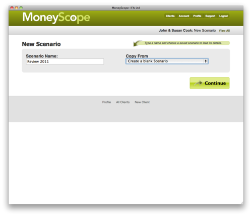 From here, you can either create a brand new scenario for a client from scratch, or copy information from an existing scenario (to save having to enter all the data in again).